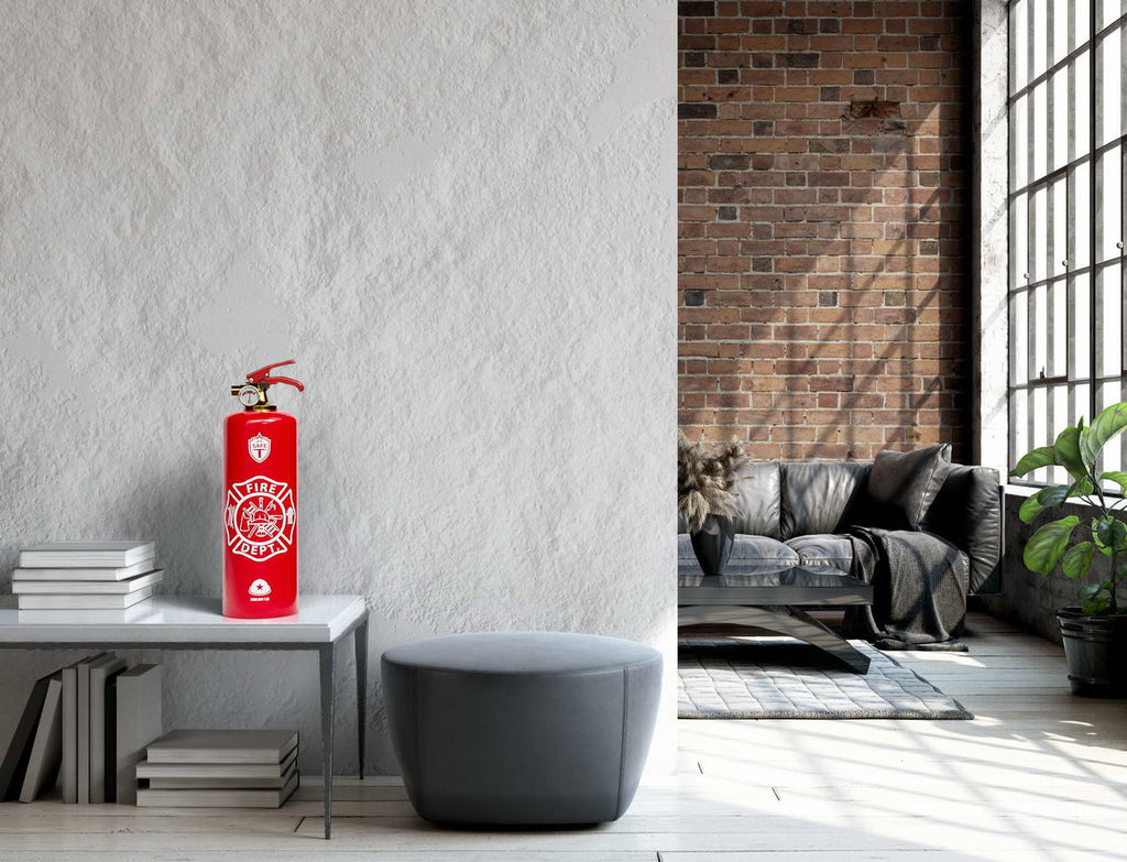 Safe-T FIRE DEPT is a fully functional Design Fire Extinguisher. One to keep in plain sight, instantly accessible in the case of a fire, while embellishing your interior.