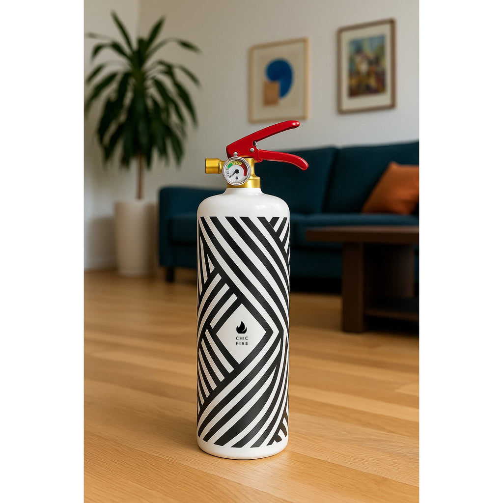 STRIPES from CHIC FIRE is a custom-designed Fire Extinguisher with a hand-painted bottle and a multilayer process for a sturdy and elegant finish. Elevate fire safety with STRIPES.